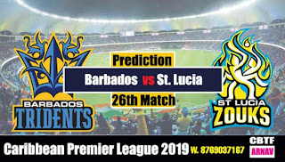 SLZ vs BT 26th CPL 2019 Today Match Prediction. Who will Win Today’s game? CPL T20 2019 Win forecast Barbados Tridents vs St Lucia Zouks …